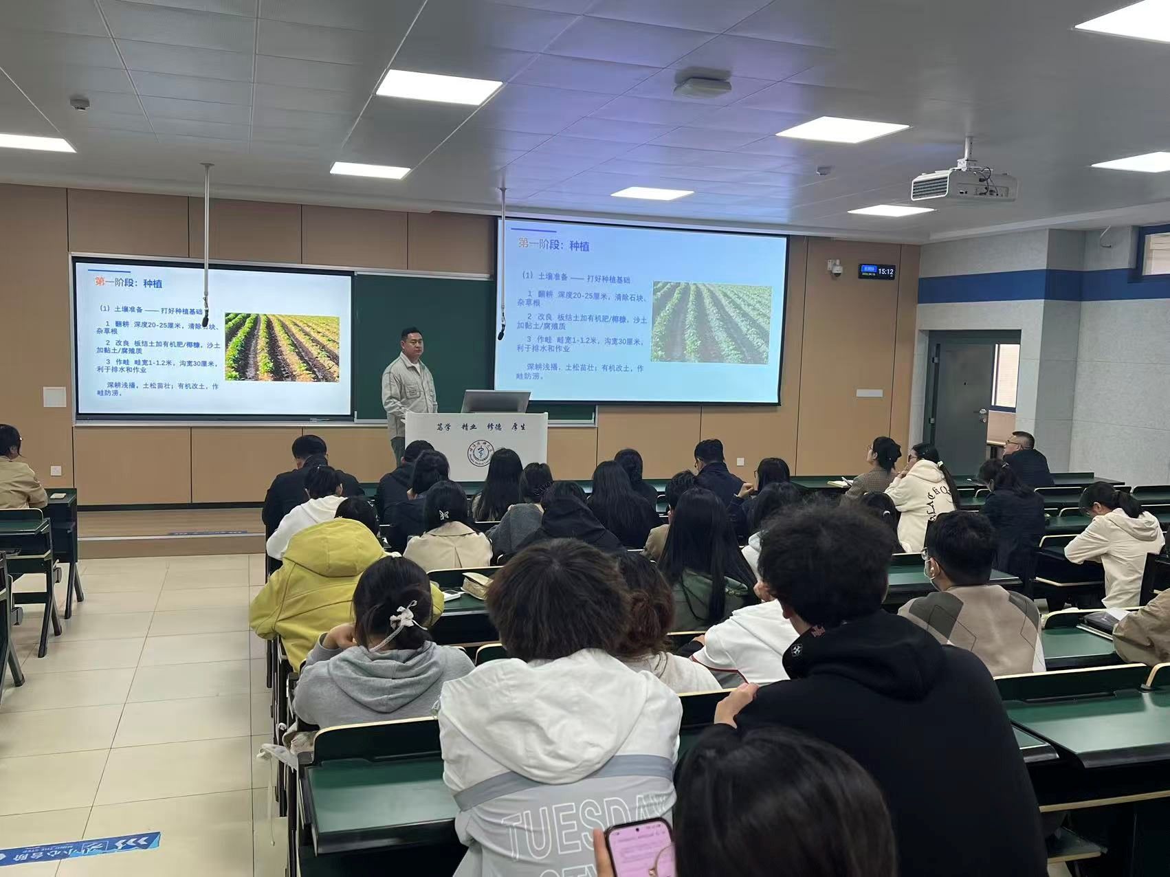 为贯彻落实《蚌埠医科大学劳动教育实践基地分布实施方案》,提升师生在劳动教育基地的实际操作与管理能力,4月16日教务处举办劳动教育基地种植与管理专题培训会。各学院教学秘书、辅导员及学生班委代表参加培训。