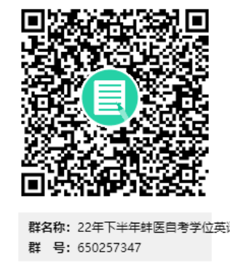 3.请所有参加2022年下半年护理学自考学士学位英语考试的同学加入以下QQ群(群号:650257347),后续考试相关事宜将在此群内通知。